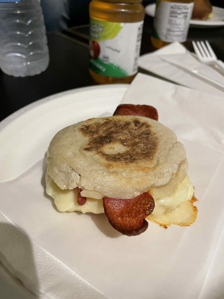Det märks att New Yorkarna är på språng. Frukost serverades som en allt-i-ett lösning. I ett typ smörpapper så att man ”kila” vidare direkt.