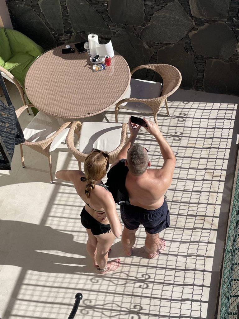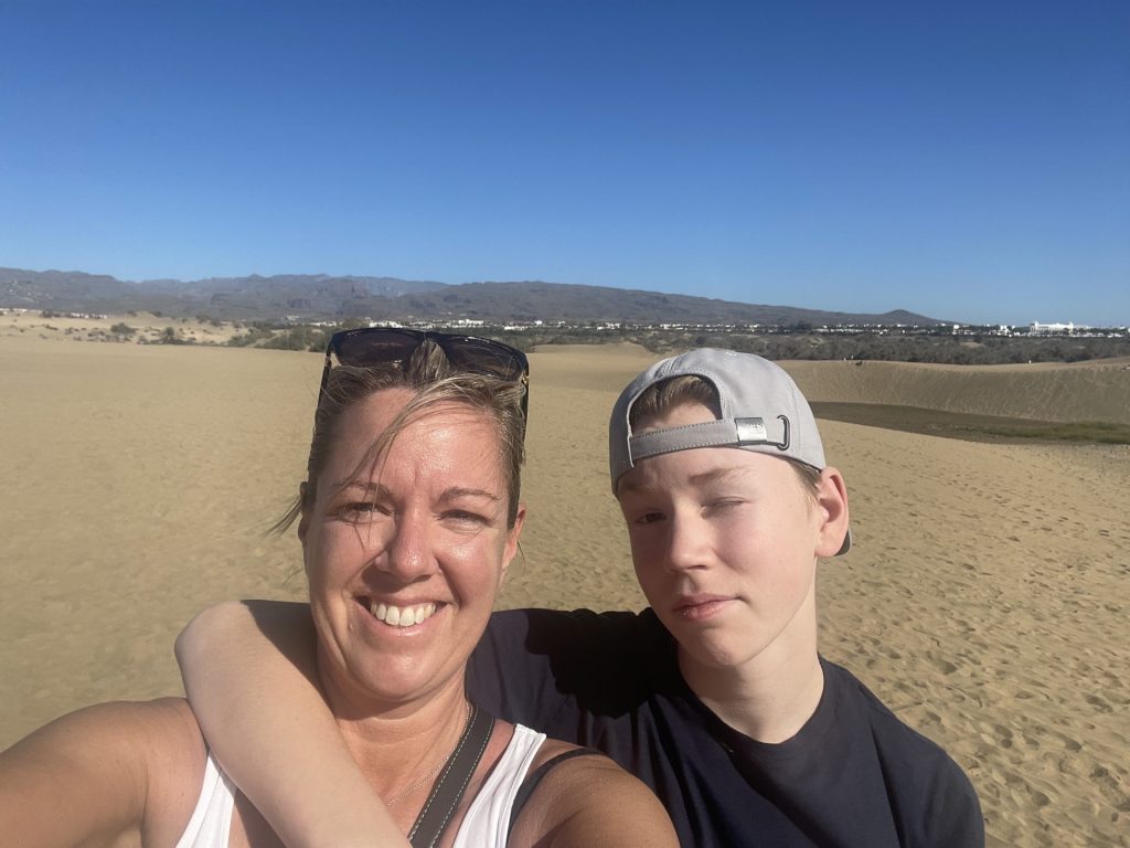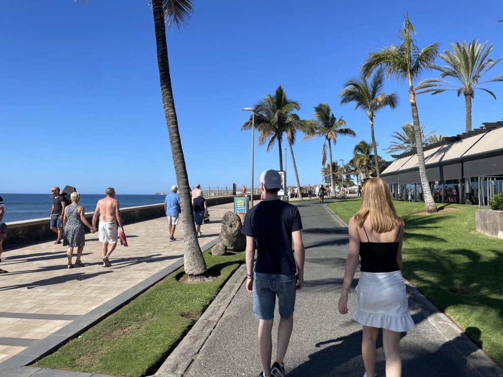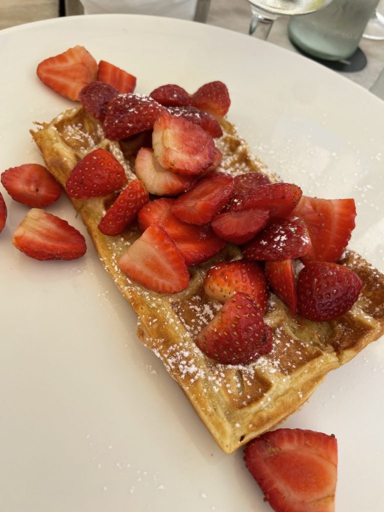 Idag tog vi bilen ner till stranden och åt lunch på vårat våffelställe. Varmt och skönt idag. Termometern visar 31 grader ????