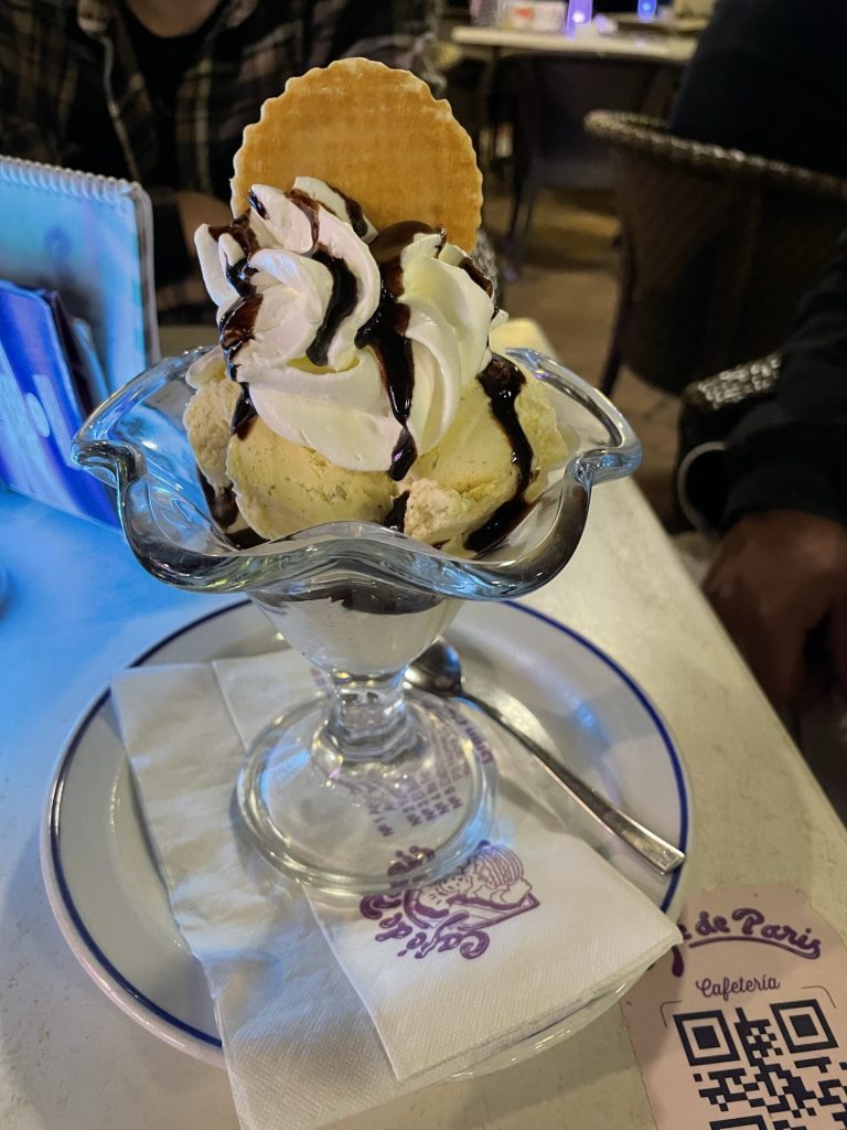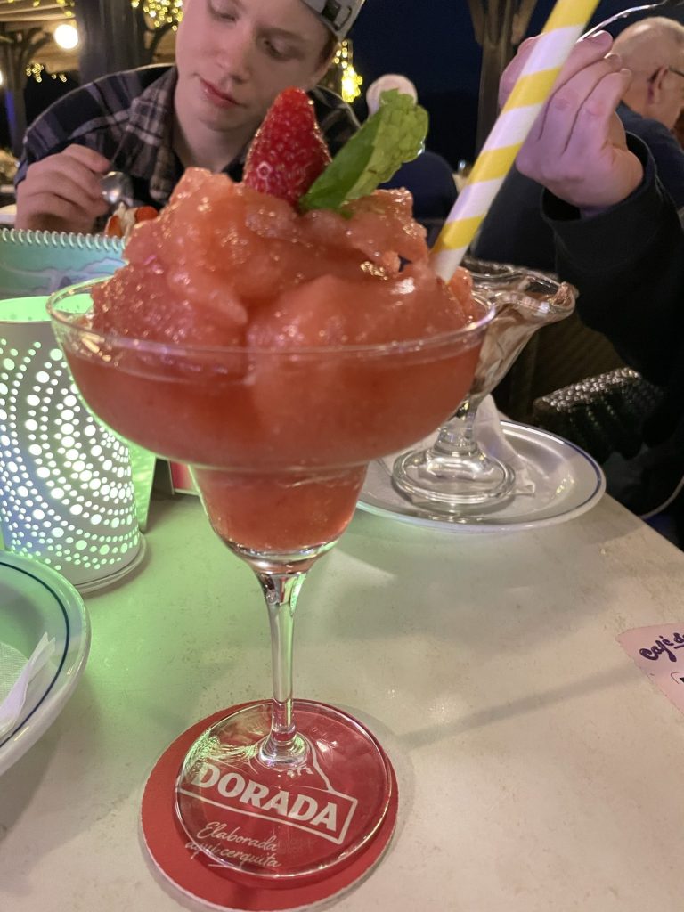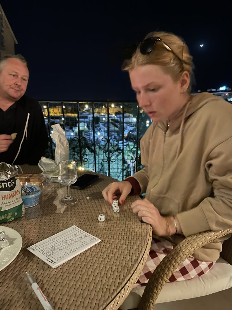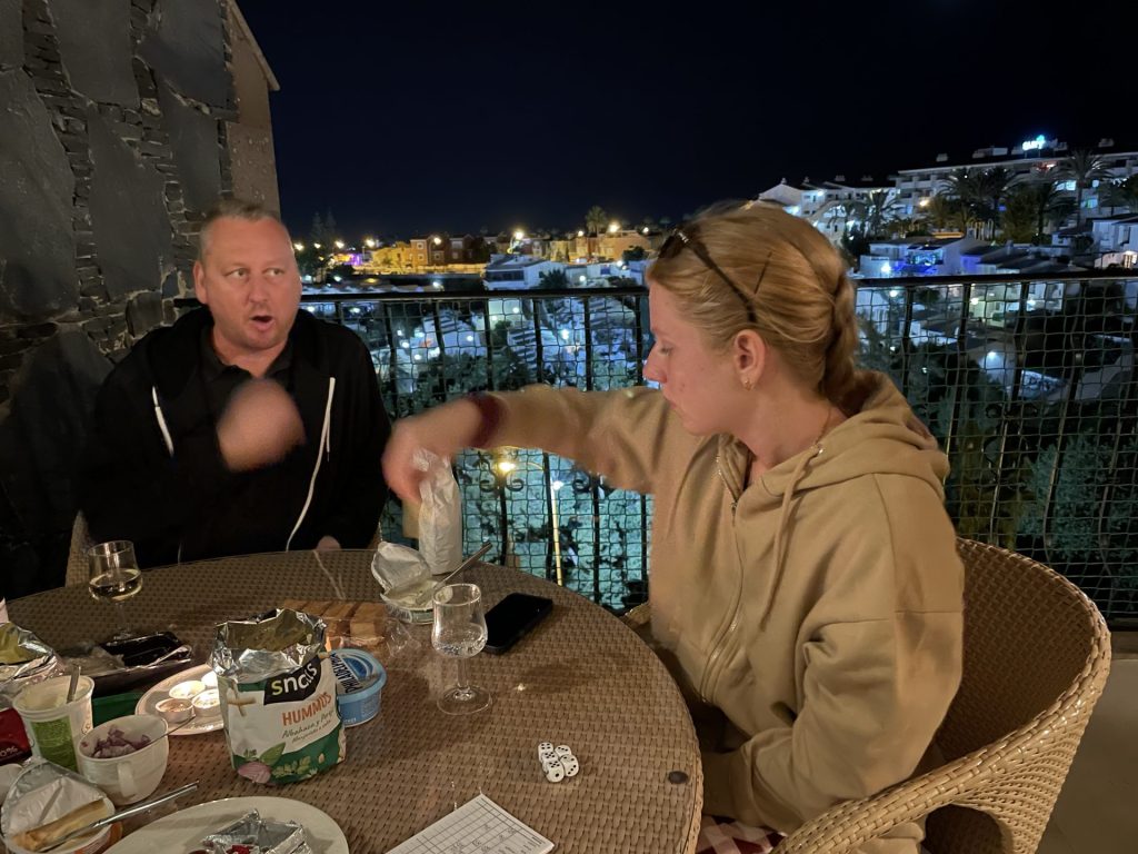 Vi åkte ner till strandpromenaden i Meloneras och åt glass. Så mysigt i mörkret med alla lampor runt palmerna. Sen tog vi bilen hem för att sätta oss på balkongen. Där tog vi fram chips, ostig kex och spelade yatzy. Så mysigt när Patrik vunnit så tittade vi på film