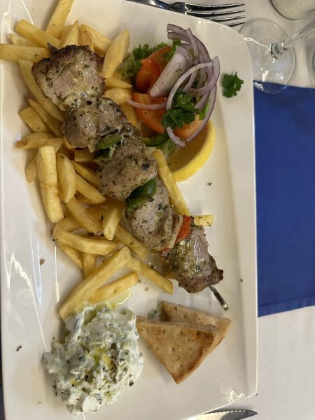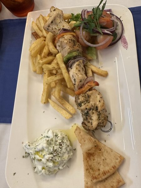 Emelie och Filip började dagen med ett ordentligt träningspass ??♀️ ?? Backen på bilden är ca 350 m lång och har en ordentlig lutningSen är det solstolen som gäller ☀️????♥️Vi gör allt vi kan för att bilden ska bli så bra som möjligt ???Kyckling souvlaki Gyros med citronpotatis Fläsk souvlaki med pommesBaklava Äpple och päron efterrättFina upplysta rondeller ?Vi avslutar kvällen med lite kortspel och ett avsnitt av Greys