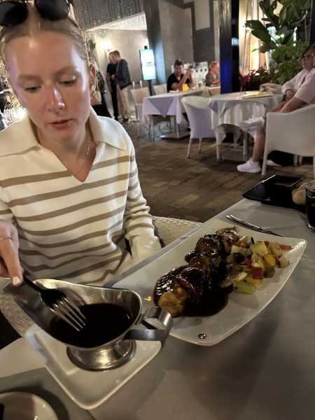 Stax innan solen gick ner tog vi en taxi till Meloneras. Där vi mist en gång ser solnedgången. Solen går ner rätt i Atlanten. Och det är otroligt vackert. Middagen åt vi på en av det fina restaurangerna vid strandpromenaden.