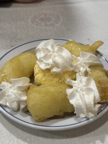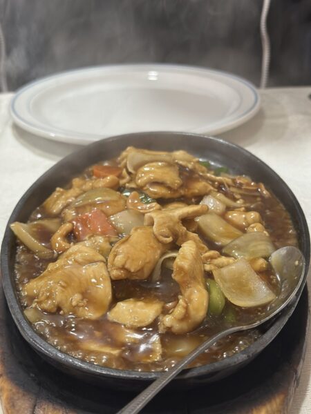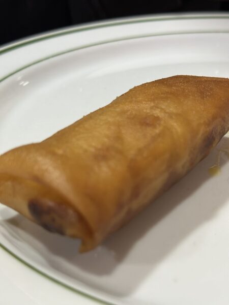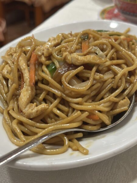 Vi beställde, stekt ris med kyckling, stekta nudlar med kyckling och kyckling med cashnötter. Förrätten blev en vårrulle (kött).