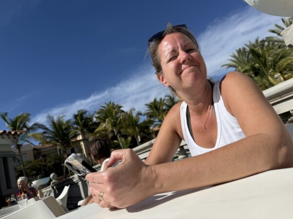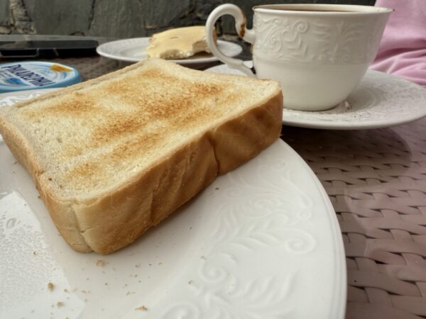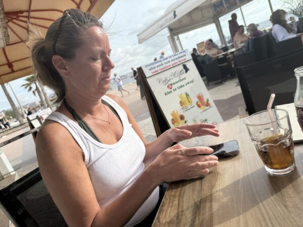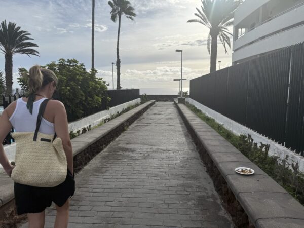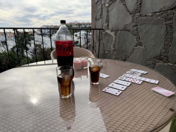 Börjar lite molnigt – men vi tror det blåser bort.Rostbröd som är dubbelt så tjock. Amazing!Matchflytt och läsk påfyllning!Market med samma varor med olika försäljareDags att se vem som är bäst på minigolf. Jag tror Linda tar priset.Tillbaka på hotellet efter en dags promenad i Ingles.