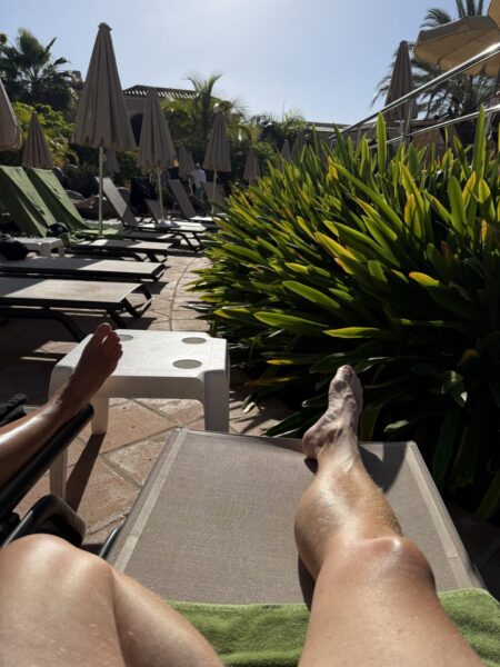 Det blev tokvarmt vid poolområdet så vi beslöt att sola vidare på vår egna takterass, med mera vind som svalkar.