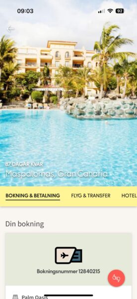 DK1733 tar oss hem med avgång kl 13:20 spansk tid (14:20 svensk). Med lite tur så är vi hemma vid 21:30 Nu ska vi avvakta